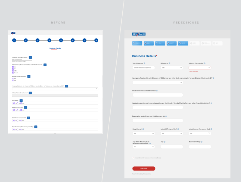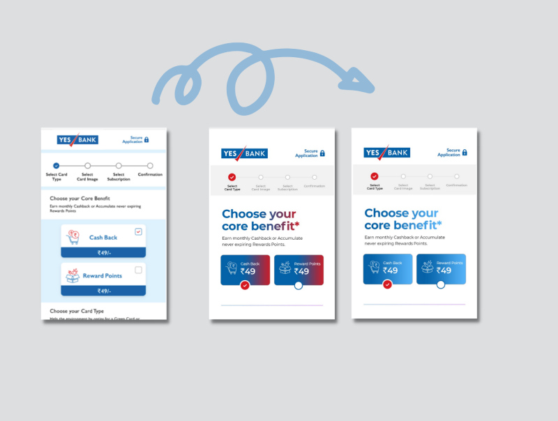 Rather than just redesigning the visuals template, we went above and beyond to map the user behaviour, business use cases and the work flow. This enabled us to reimagine the entire user journey itself – making it usable, likeable and making it resonate with the YES Bank brand persona, and giving it a `voice` that customers could relate to.
